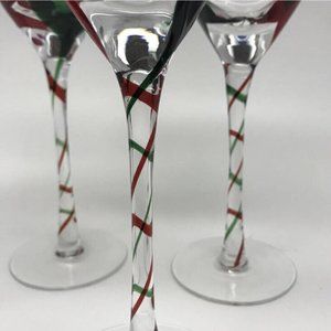 Pier 1 Imports Red & Green Clear Swirl Stem Ribbon Glasses (set of 8) 9" tall 10 oz. (set of 8) 9" tall 10 oz..