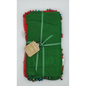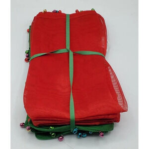 Pier 1 Red Green Sheer Napkins Set of 4 with Red Green Jingle Bells NWT