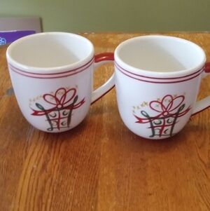 Elegant mugs with a ribbon design. Perfect for warm beverages.
