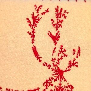 Pier 1 Reindeer Embroidered Square Decorative Throw Accent Pillow. Red and Off White (almost tan) square pillow featuring an embroidered snowflake reindeer with a huge rack on the front, red whipstitching all around the pillow, red backing and a zipper closure. (pillow insert included) Fun pillow to decorate for the winter and Christmas.