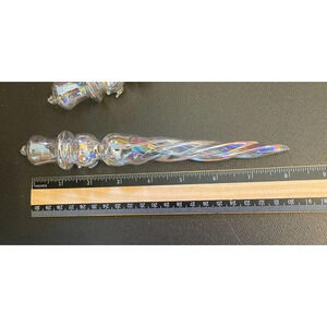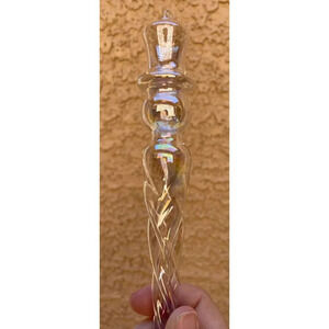 Pier 1 Set Of 2 Handblown Iridescent Glass Spiral Snowman Icicles Ornaments 8"