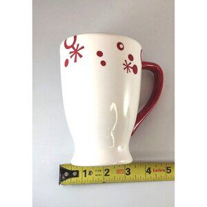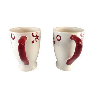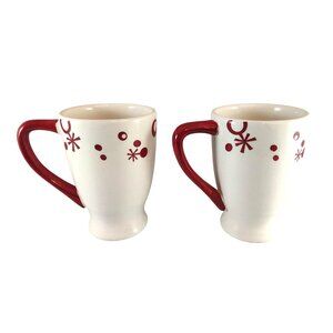 Pier 1 Set Of 2 Red & White Hand-Painted Flurry Mugs Dishwasher & Microwave Safe