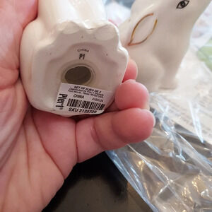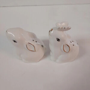 Pier 1 Set of 2 Ceramic Rabbit Salt and Pepper Shakers White and Gold Detail