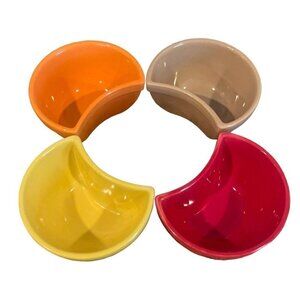 Pier 1 Set of Four Tasting Dishes Sauces Condiments Red Orange Tan Yellow