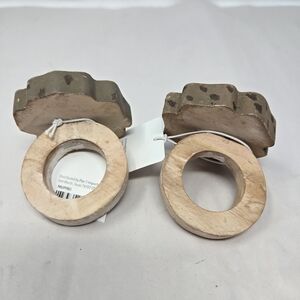 This set of two Pier 1 napkin holders adds a rustic touch to any dining occasion. The holders are made of wood with a brown color and feature a flower pattern. The carving details add a unique and elegant touch to the holders. These holders are perfect for any occasion and are sure to impress your guests.