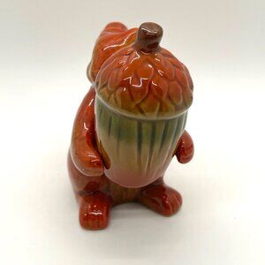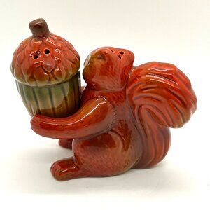 This whimsical squirrel and acorn ceramic salt and pepper shaker set adds charm to any dining table. Hand-painted with rich tones, it's both decorative and functional.