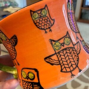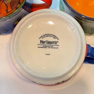 Pier 1 Colorful Owl Coffee Mugs, Made to be Stackable. Good Condition. Some Crazing. One Cup Has a Light Scratch From Crazing But Does Not go Through Cup. 4 Cups Total.