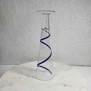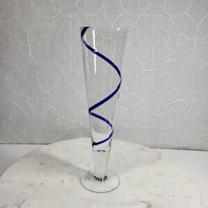 Pier 1 Swirline Pilsner Glass Pair 10" Cobalt Blue Handblown Set of 2