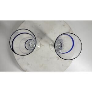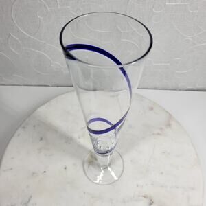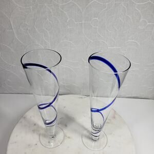 Pier 1 Footed Swirlline Glases 10" Blue Handblown Pilsner Beer Glasses Set of 2