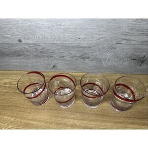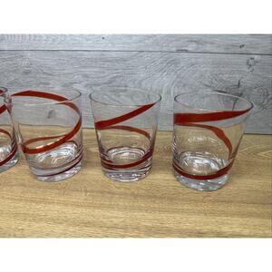 Pier 1 Swirline Red 4.25” Double Old Fashioned Glass Tumblers~Set Of 4