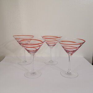 Pier 1 Swirline Red" Margarita Glasses 7" Set of 4