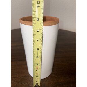 The product is a vintage Pier 1 Terra Cotta Wine Chiller hand-painted in Italy with purple grapes. It is a unique and beautifully crafted piece made of terracotta, featuring a white and purple color scheme. This wine chiller adds a touch of elegance to any kitchen or dining area, perfect for storing and chilling your favorite wines. The hand-painted design adds a personal touch to this charming piece, making it a stylish and functional addition to your home.