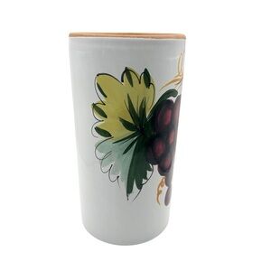 This is a very pretty terra cotta wine chiller/utensil holder made in Italy. It is hand painted. A pretty way to store your utensils because the grape design is so pretty and eye-catching. Would look great in a mediterranean, cottage, country/farmhouse chic setting. It is pre-owned and in great condition with no chips or cracks. The design is still vibrant.