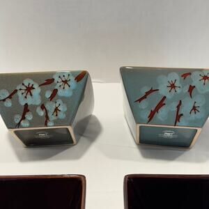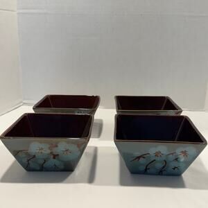 Pier 1 Tranquil 6" Square Soup Cereal Bowl Set of 4 Green Floral Cherry Blossoms
