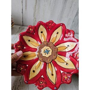 Pier 1 carynthum flower plate dessert salad red earthenware Bohemian unique set 7.5