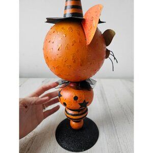 Pier 1 cat pumpkin metal glitter Halloween prop unique vintage black