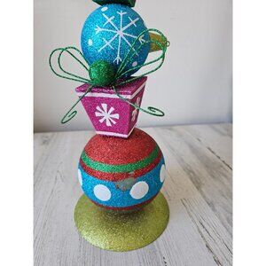 Holly Jolly Metal glittered ball presents Decoration Whimsical Christmas Decor