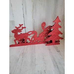Santa Sleigh Reindeer Standing Red Glitter Foam Silhouettes