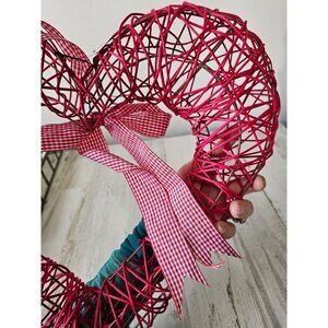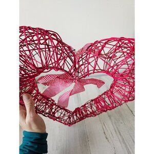 Pier 1 wicker large heart Valentine hanging decor plaid red