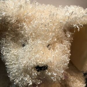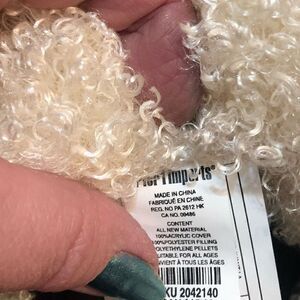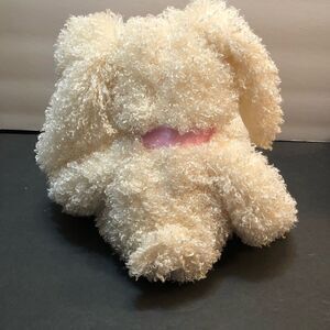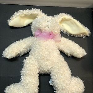 Pier 1 Imports Easter Bunny soft plush. Curly hair. Pink ribbon. Sewn on eyes. Measures 15” EUC