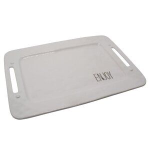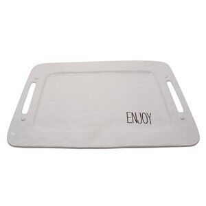 Pier 1Imports White Dolomite Serving Tray w/ Handle Cutouts & ENJOY Text 20" HTF