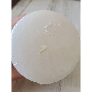 Product new in plastic wrap, some dents and scratches around candle some sticker residue, bottom side opened a bit on plastic but otherwise in good condition
