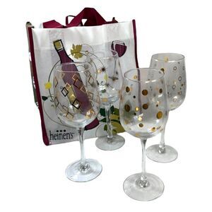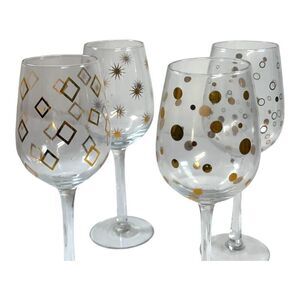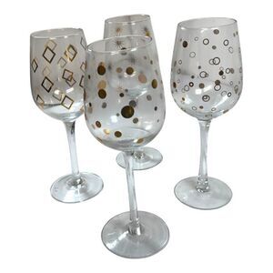 Pier 1 imports stem wine glasses set of four clear with gold design Polka Dot