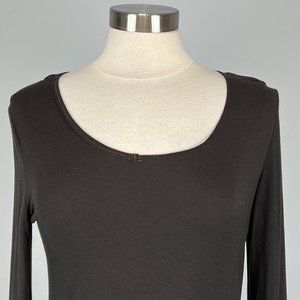 Pier Antonio Gaspari Womens Brown Long Sleeve Blouse Scoop Neck Tee size 12