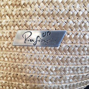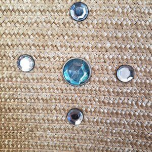 Pier Giorgio Womens Bag Straw Wood Handles Rhinestone Crescent Zip Closure Italy