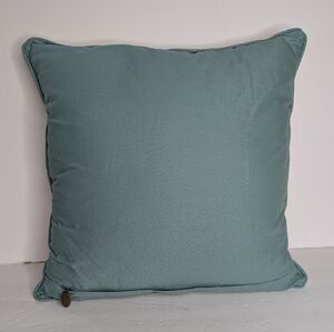 This lovely accent pillow from Pier 1 features an adorable little brown rabbit in a garden with embroidered flowers and a butterfly. The colorful scene on the front is bordered with cheerful yellow corners and the back is a solid robins egg blue with a hidden zipper, all in 100% cotton. 100% polyester filled insert included.This throw pillow will brighten up any Cottagecore, Forestcore, or Whimsical decor and also makes a great Spring/Easter accent piece.