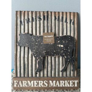 Pier Imports Fresh Milk Decorative Sign 13"x11" Cow Farmers Market Farmhouse