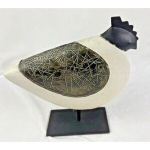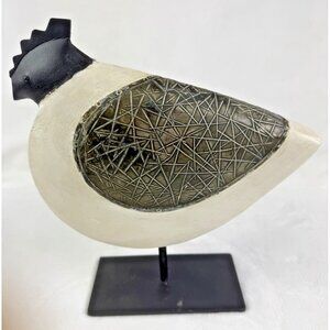 Pier One Chicken Rooster Statue Cast Iron Wood Black & White 10” Tall