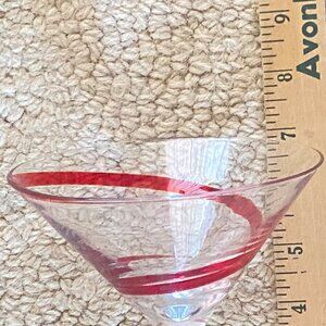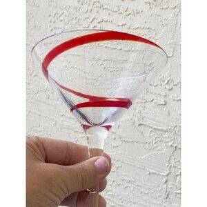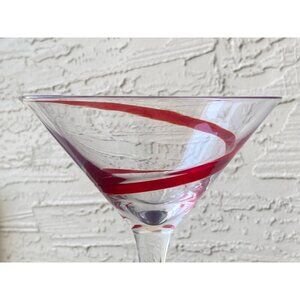 Pier One Cosmopolitan Red Swirl Line Martini Glass 7” Handblown 8 oz Retired
