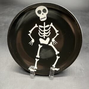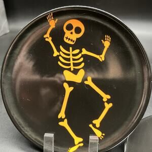 Pier One Imports Skeleton Halloween Plates 6 in Set of 2 Black Orange White