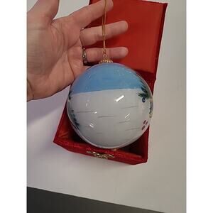 This Pier One Li Bien Hand Painted Glass Ornament features a classic round shape, standing at 4 inches tall. Handmade in 1999, this original Christmas tree ornament is a beautiful addition to any holiday decor collection. The multicolor design, featuring a snowman character, showcases the art glass production style and the intricate hand-painted details typical of Li Bien's collectible ornaments. Made in China, this vintage piece from the 1990s is a unique and charming representation of classicism in holiday collectibles.