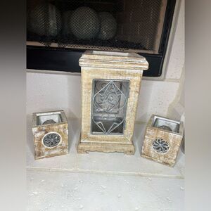 Pier 1 India Wood and Metal White Washed Large Rustic Candle Holders Set of 3
