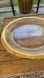 Great table accent piece with antiqued gold trim and clear glass inside. Gold was hand painted. See pic for measurements. In great condition.