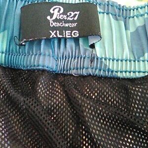 Fun tropical graphics. Velcro at front waist. Laces and zipper. Elastic waist. Side pockets and back pockets with Velcro. Net lining pants inside. Size XL measures 34-40 at waist, 48 at hips, 12 inch rise, 7.5 inch inseam. 26 around leg opening.