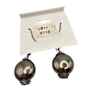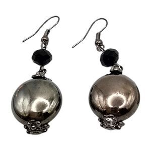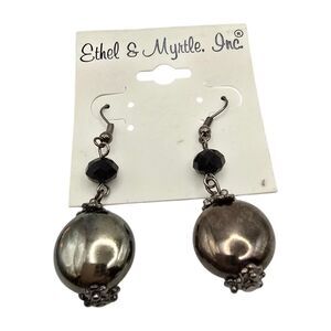 Pierced Beaded Earrings Ethel & Myrtle Chunky Black Charcoal Color Round Bead.