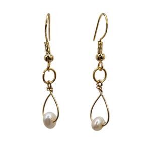 Pierced Earrings Baroque Pearl Soft Off White Teardrop Small 4mm Artisan SKU2793.