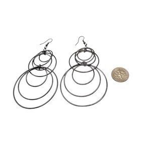 Pierced Earrings Layered Overlapping Rings Charcoal Black Tone French Wire