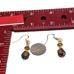 Pierced Earrings Leopard Skin Jasper Bicone Brown Beads Handcrafted SKU2794