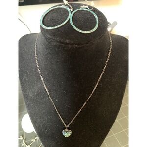 Pierced Earrings Necklaces Adjust Ring Blue-Green Silver Theme Vintage Lot Of 16