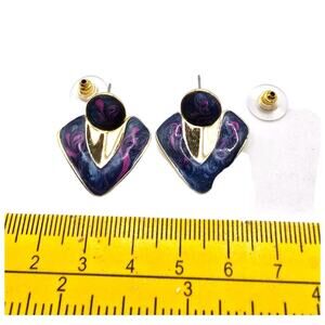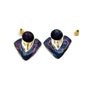 Pierced Earrings Retro Swirl Enamel Blue Purple Pink Colors Gold Tone SKU 2296