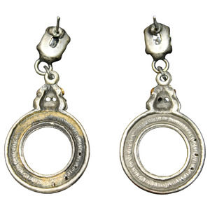 Pierced Earrings Round Rhinestone Purple Green Silver Tone Dangle Boho Vintage