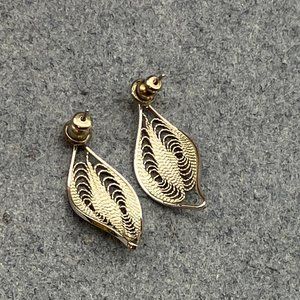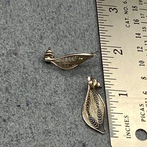 Pierced Earrings Silver Leaf Filigree Textured Wire Curved Retro BoHo Autumn