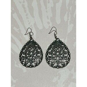 Pierced Earrings Silver Tone Filigree Mid Century Modernist Victorian Goth