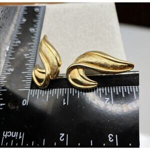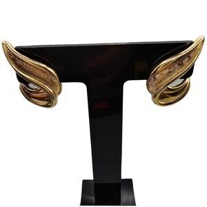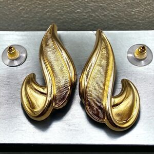Vintage Avon pierced earrings featuring a textured brushed gold-tone finish in a retro fashion style. Signed on the back. Suitable for casual or dress wear and ideal for collectors of vintage Avon jewelry.