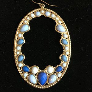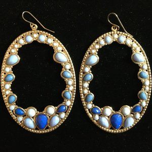 Pierced Earrings Vintage Retro Large Hoops Blues Women's Jewelry Costume SALE!