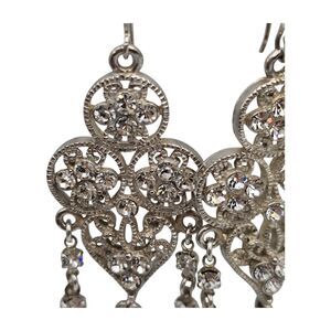 Pierced Earrings Wedding Dangle Heart Links Clear Rhinestones Silver Tone